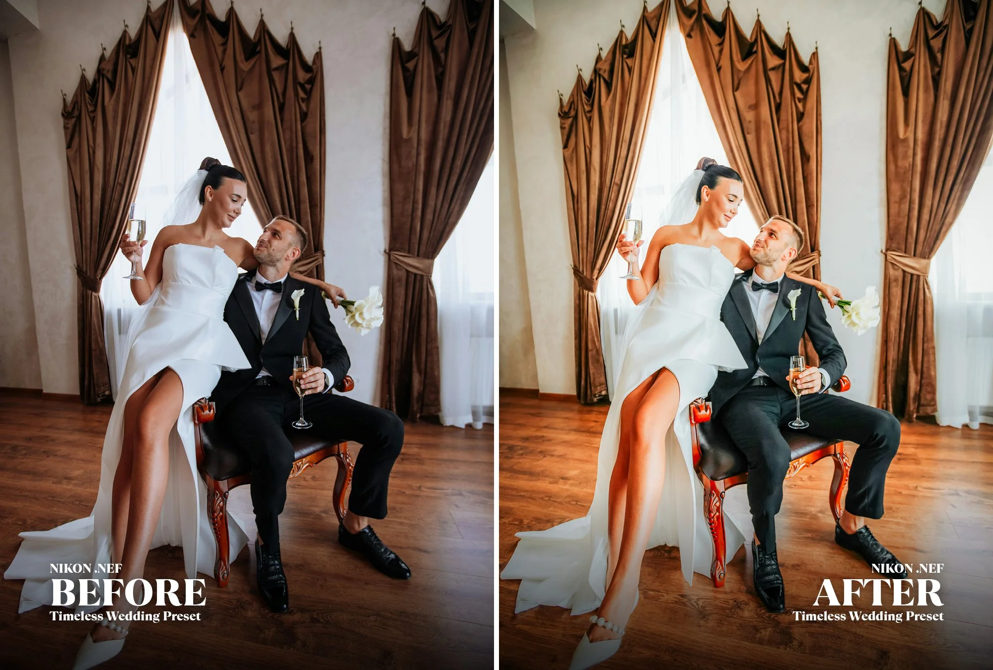 If you want a clean, consistent preset that actually works with your wedding shots, then this is the preset for you.
